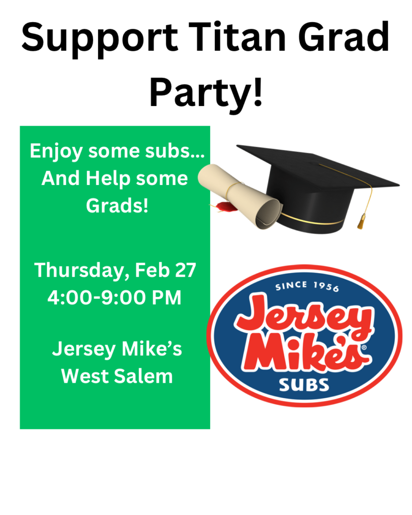 **Be sure to show the flyer or tell the employee when you order that you are there for the West Salem Grad Party Fundraiser!